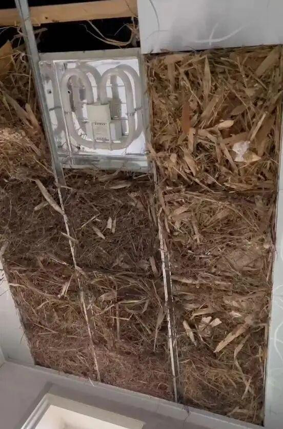 等到拆开后,现场就被震惊了,全家人看了都震惊了,原来铝扣板上面不是空的,而是有很多干枯的树叶。