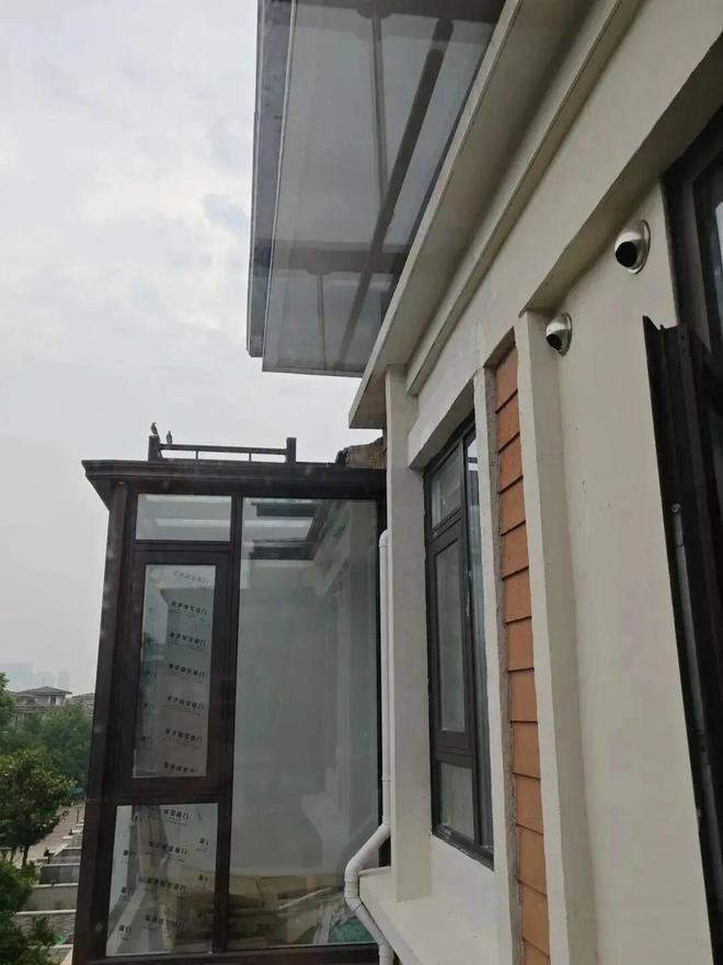 小黑鸟是通过棚顶墙壁位置的小孔进到棚顶里面,然后做窝的。